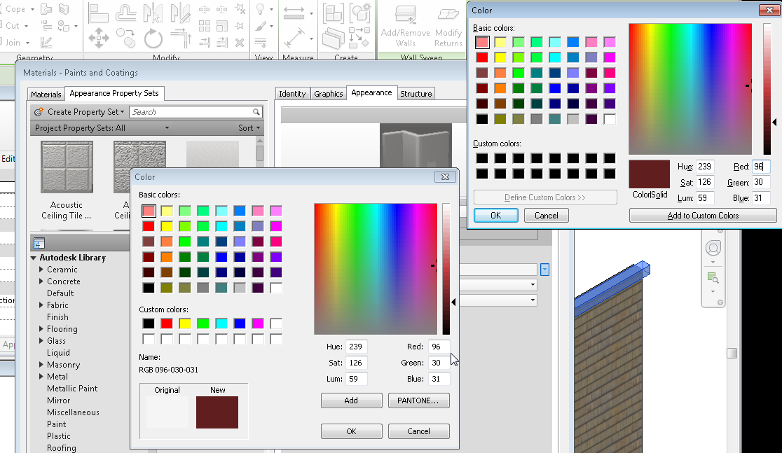 For an example of how to use Colorette with Revit, make an EXE from the AHK code and run it. Find a web page with the color you want to find, like http://www.jameshardie.com/homeowner/colorplus-palette.shtml , hover your mouse over the color on the screen and press Space on your keyboard. A color dialog will appear with the RGB values.